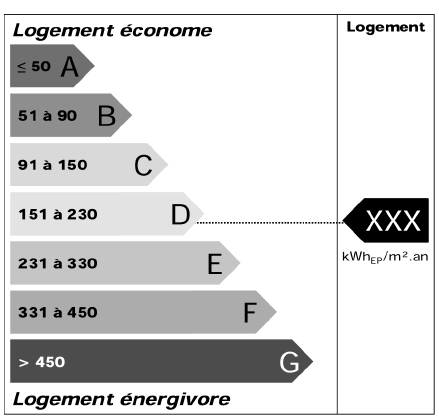 3 d) Un classement de la quantité d'énergie primaire pour le chauffage, l'eau chaude sanitaire et le refroidissement du lot selon une échelle de référence notée de A à G indiquée en annexe 3.3 du présent arrêté, en fonction de la valeur du rapport de cette quantité à la surface habitable de la partie privative du lot ;