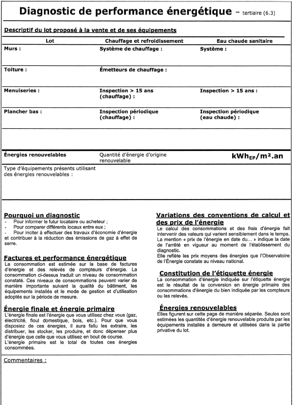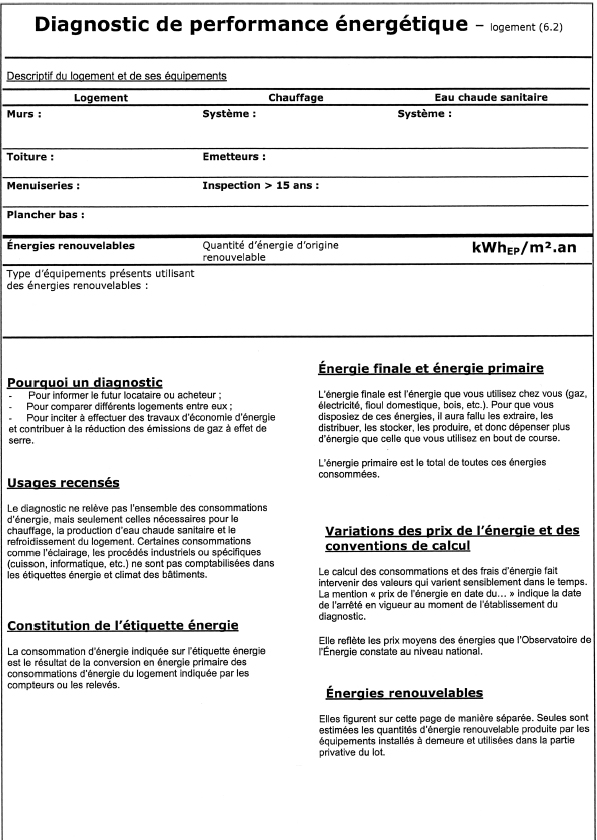 Le diagnostic de performance énergétique est établi selon le modèle indiqué en annexe 6.2 du présent arrêté.