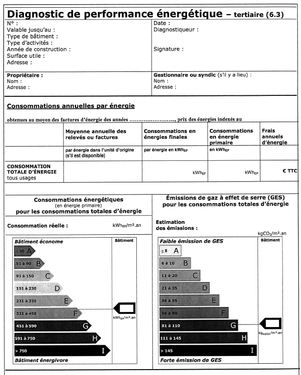 Le diagnostic de performance énergétique est établi selon le modèle indiqué en annexe 6.1 du présent arrêté.