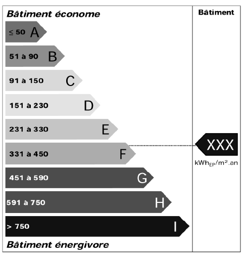 3 e) Un classement de la quantité d'énergie primaire pour le chauffage, l'eau chaude et le refroidissement du lot selon une échelle de référence notée de A à G indiquée en annexe 3.3 du présent arrêté, en fonction de la valeur du rapport de cette quantité à la surface habitable de la partie privative du lot ;
