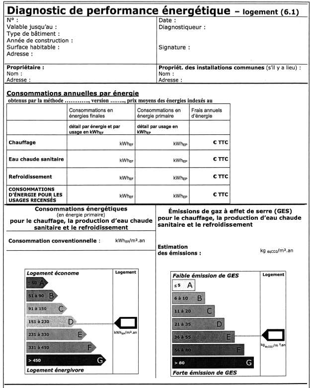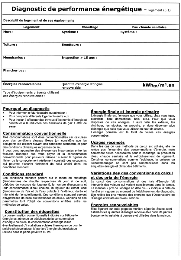 Le diagnostic de performance énergétique comporte les éléments suivants :