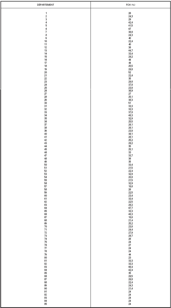 Les données Dhref, Nref, C2, C3, C4 sont précisées par département dans les tableaux pages suivantes.