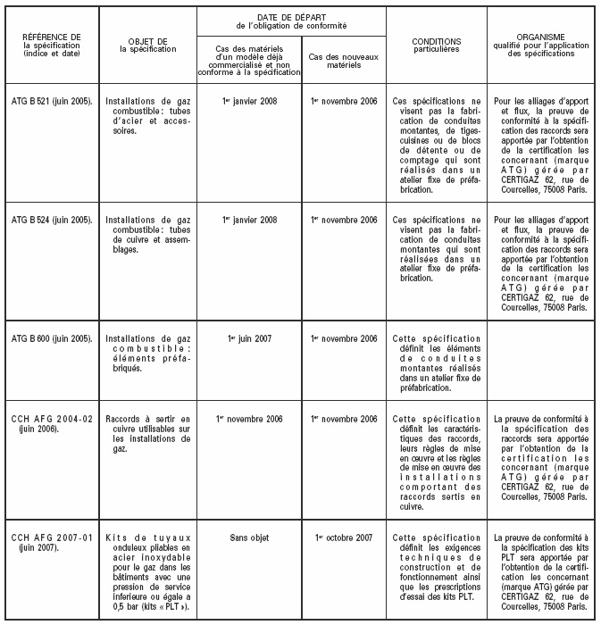 Vu l'arrêté du 15 juillet 1980 modifié rendant obligatoires des spécifications techniques relatives à la réalisation et à la mise en oeuvre des canalisations de gaz à l'intérieur des bâtiments d'habitation ou de leurs dépendances ;