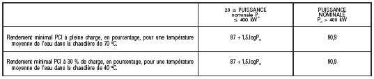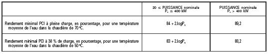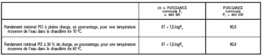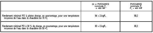 Lorsque la totalité de l'installation de chauffage à combustible liquide ou gazeux est réalisée, la nouvelle chaudière doit également respecter les exigences du tableau ci-dessus et les radiateurs doivent être adaptés au fonctionnement à basse température.