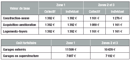 L'ICC du 2e trimestre de l'année 2007 est de 1 435 contre 1 366 en 2006, ce qui conduit à actualiser les valeurs de base ainsi que le coût forfaitaire des garages à partir du 1er janvier 2007 conformément aux tableaux ci-après :
