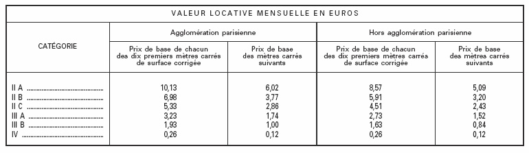 « Art. 5. - A compter du 1er juillet 2007, le prix de base de la valeur locative mensuelle des locaux d'habitation ou à usage professionnel est fixé conformément au tableau ci-après :