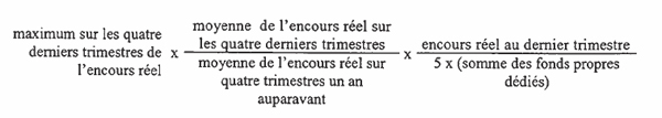 ― le maximum sur les quatre derniers trimestres de l'encours réel représente la valeur maximale, observée sur les quatre derniers trimestres précédant la date du calcul, de la somme des encours réels totaux déclarés par les organismes garantis ;