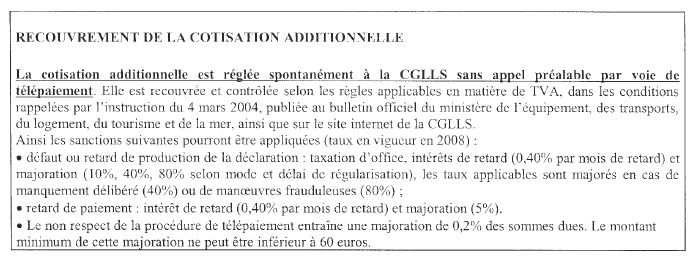 Pour le calcul de la cotisation additionnelle due en 2008 :
