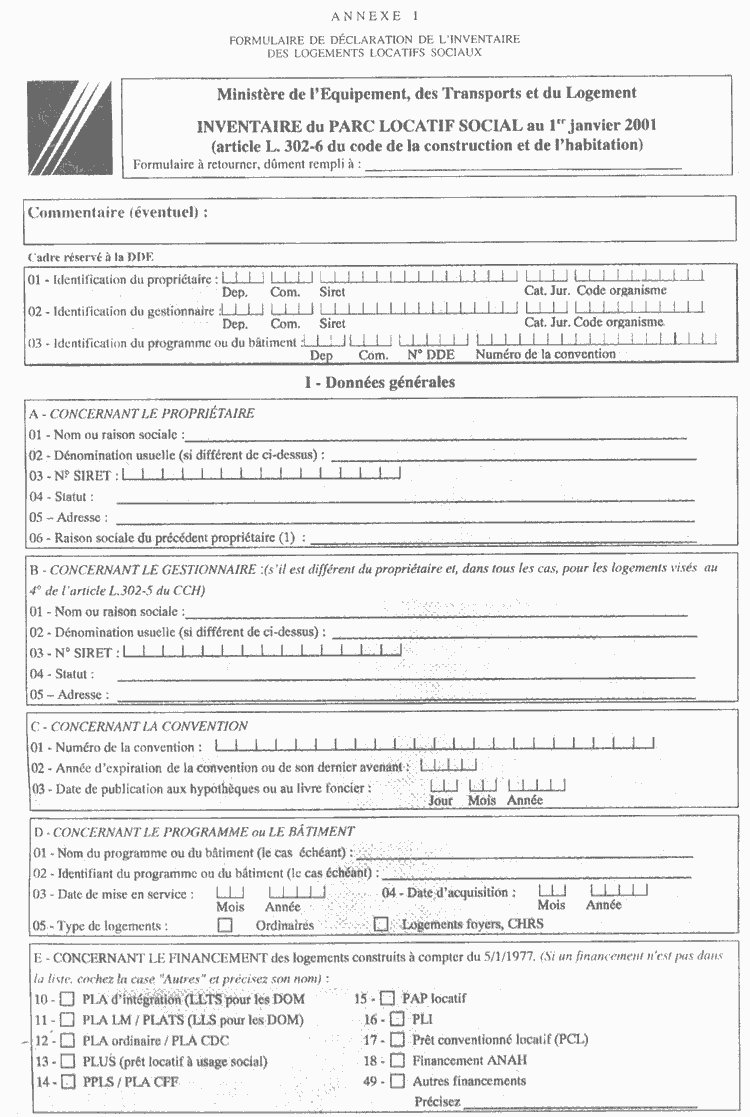(1) : Ne remplir cette ligne que si les logements ont fait l'objet d'un changement de propriétaire l'année précédente, et si ces logements répondaient déjà à la définition de la loi.