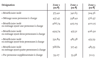 tranches de ressources pour l'évaluation de l'équivalence de loyer et de