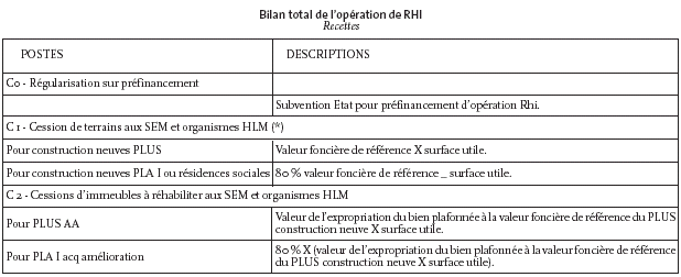 - Bilan total de l'opération de RHI Recettes