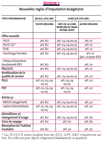 ZUS, GPV et ORU ainsi que les dépassements de charge foncière des PLUS-CD