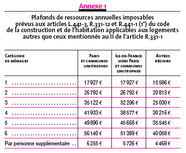 Textes sources: Articles L. 441-1, R. 441-1 (1°) et R. 331-12 du code de la construction et de l'habitation (CCH); arrêté du 29 juillet 1987 modifié fixant les plafonds de ressources des bénéficiaires de la législation sur les HLM et des nouvelles aides de l'Etat en secteur locatif.