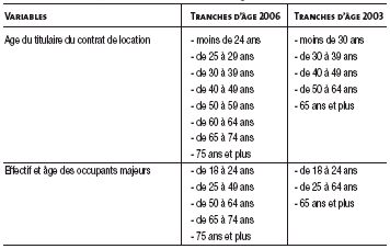 Eclatement de certaines classes d'âge avant trente ans et à partir de cinquante ans sur les variables «Répartition des ménages par âge du titulaire du contrat de location» et «Effectif et âge des occupants» en adéquation avec les découpages de l'INSEE pour permettre une exploitation plus fine des jeunes et des personnes âgées.