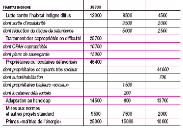Les priorités nationales de l'ANAH s'inscrivent dans le programme «Développement et amélioration de l'offre de logements» qui regroupe désormais dans le cadre de la Loi organique relative aux lois de finances(LOLF), l'ensemble des crédits de l'Etat consacrés à la production de logements et à l'amélioration de l'habitat existant.