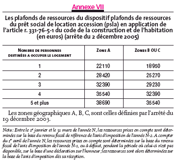 Les plafonds de ressources du dispositif plafonds de ressources du prêt social de location accession (psla) en application de l'article r. 331-76-5-1 du code de la construction et de l'habitation (en euros) (arrête du 2 décembre 2005)