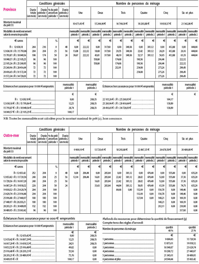MODALITES DE REMBOURSEMENT DU PRET A 0% BAREME APPLICABLE DU 1er JUILLET 2004 AU 30 SEPTEMBRE 2004