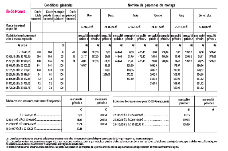 Les modalités de remboursement du prêt à taux zéro font l'objet chaque trimestre d'un avis de la Société de Gestion du Fonds de garantie de l'accession sociale à la propriété (SGFGAS). Les avis du SGFGAS publiés ci-après donnent les barèmes applicables du 1er octobre au 31 déctembre 2003. Rappelons que la date de référence est celle de l'offre de prêt émise par l'organisme prêteur.