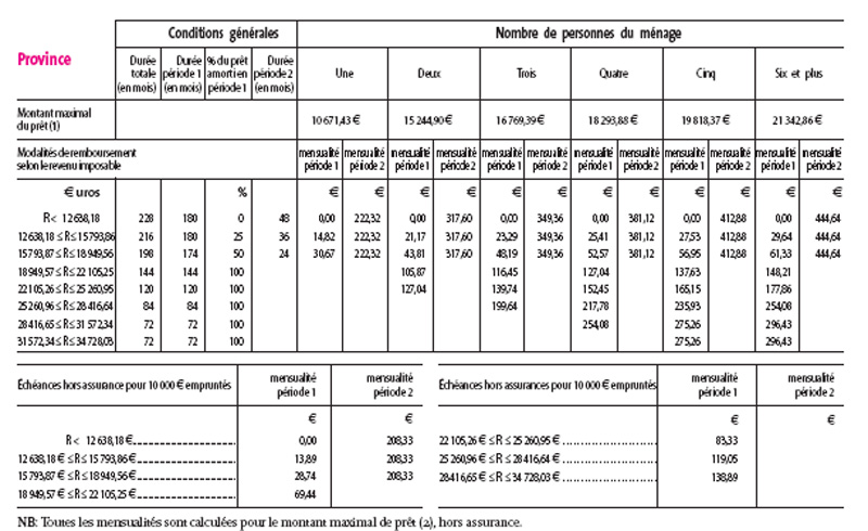 En application de l'arrêté du 24 octobre 1996 modifiant l'arrêté du 2 octobre 1995 et après prise en compte de l'évolution des taux d'intérêt constatée entre, d'une part, la période du 10 février au 10 mars 2003 et, d'autre part, la période du 10 août au 10 septembre 2003, les caractéristiques du prêt à 0% pour les bénficiaires sont inchangées.
