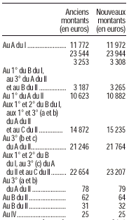 1° Les montants figurant dans l'article sont remplacés par les montants suivants